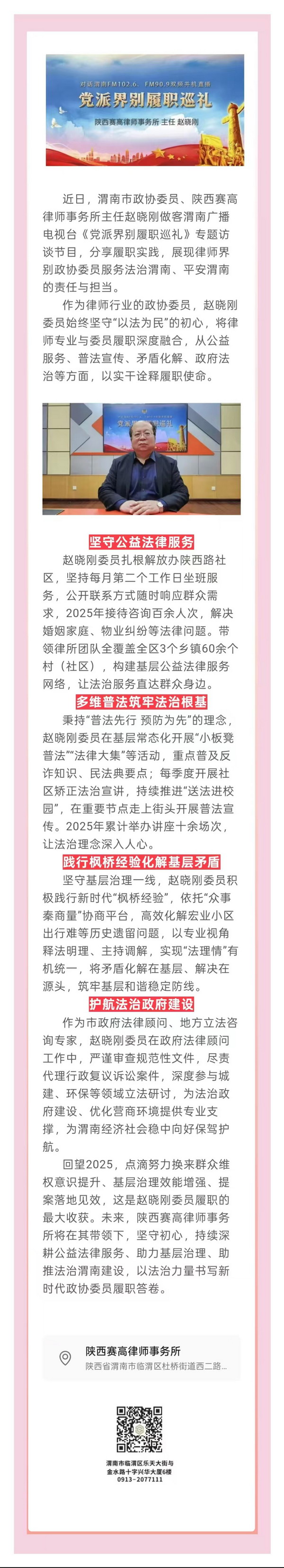 同心筑梦 履职为民|赵晓刚委员做客《党派界别履职巡礼》专题访谈 以法治担当践行政协使命