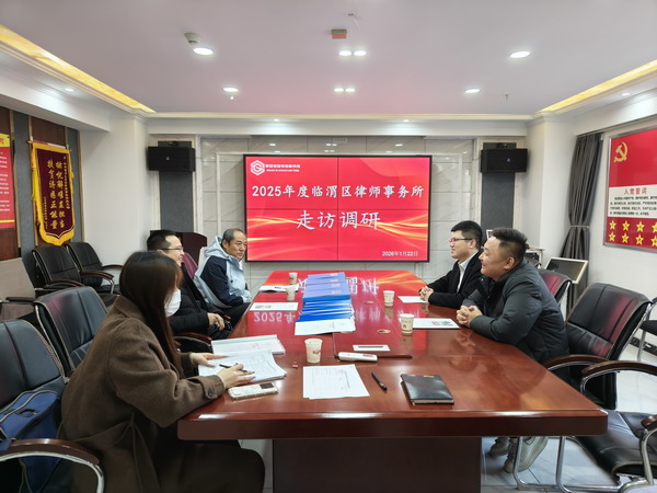 1月22日上午,临渭区司法局调研组组长临渭区司法局党组副书记钱卫鹏带领第一检查组公共法律服务中心主任田中强、促法股负责人王誉桦赴我所走访调研2025年度工作开展情况。律所党支部书记赵斌、执行主任纪超分别就党建工作、律所工作开展情况作总结汇报。