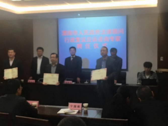2016年4月15日上午10时,陕西省渭南市人民政府在渭南市民综合服务中心会议室圆满召开了“渭南市人民政府法律顾问行政复议应诉咨询专家聘任仪式”的会议。