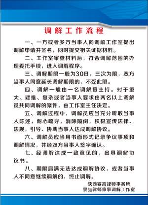 这是渭南市成立的第二家律师调解工作室,第一家专业律师调解工作室,是律师专业法律服务与调解的有机结合,拓展了律师业务领域,实现案件的法律效果和社会效果的统一和平衡,促进了渭南市多元化纠纷解决机制的建立和发展。