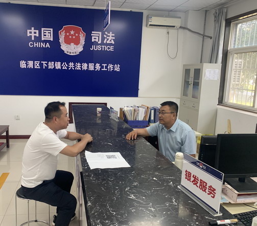 陈鹏律师在下邽镇公共法律服务站为民众提供法律咨询服务