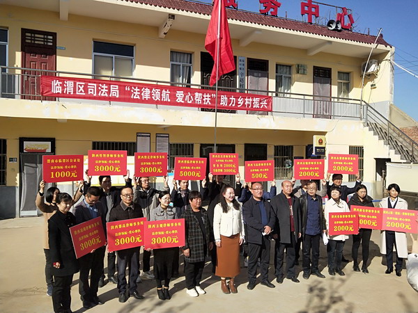 11月17日临渭区司法局“法律领航 爱心帮扶”助力乡村振兴活动在阎村镇辛赵村党群服务中心举行,临渭区司法局各部门领导、辛赵村村书记出席活动,城区13家律师事务所及临渭区公证处参加本次帮扶活动,助力爱心款并认领爱心帮扶田。