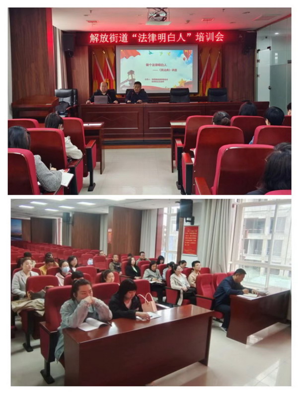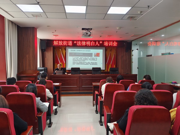 陕西赛高律师事务所主任律所赵晓刚在解放街道办事处会议室为辖区各社区主任及办事处干部进行“法律明白人”讲座培训